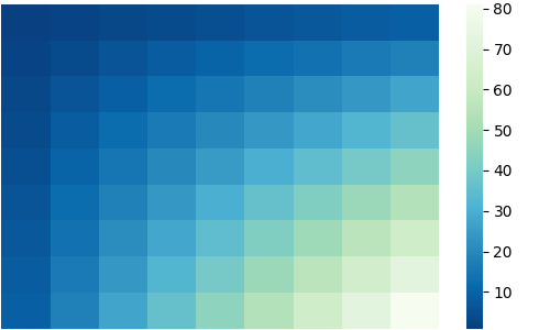 sns.heatmap(df, cmap='GnBu_r')