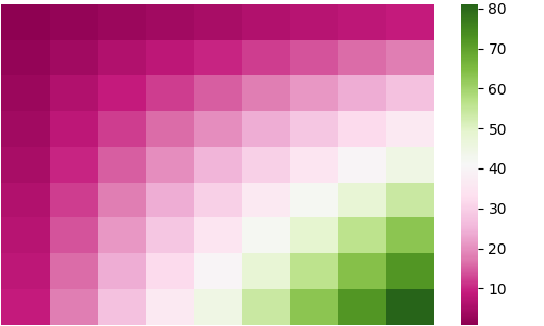 sns.heatmap(df, cmap='PiYG_r')