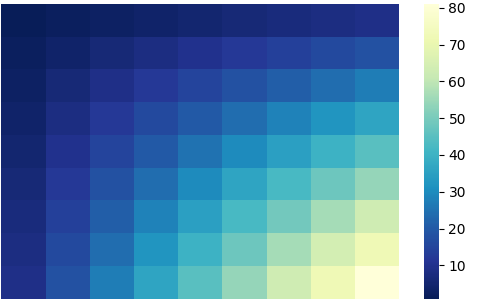 sns.heatmap(df, cmap='mako_r')