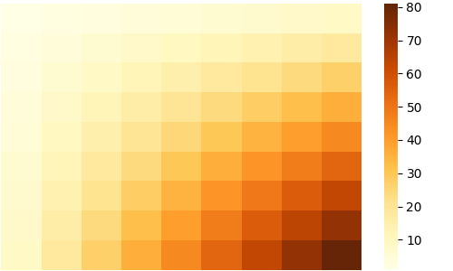 sns.heatmap(df, cmap='Oranges_r')