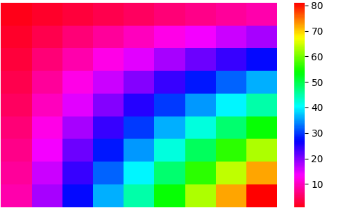 sns.heatmap(df, cmap='rainbow')