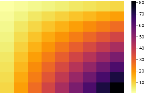 sns.heatmap(df, cmap='inferno_r')