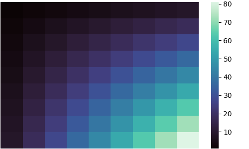sns.heatmap(df, cmap='mako')