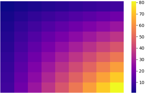sns.heatmap(df, cmap='plasma_r')
