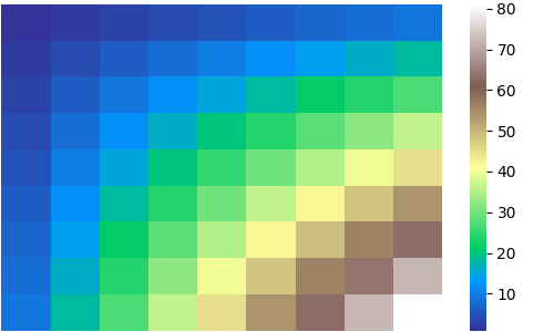 sns.heatmap(df, cmap='terrain_r')