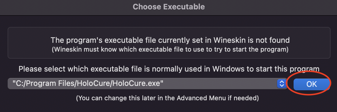 ユーザーのホームにあるアプリケーションフォルダのWineskiフォルダの私はデフォルト名のアプリを開くとHoloCureがプレイできます。