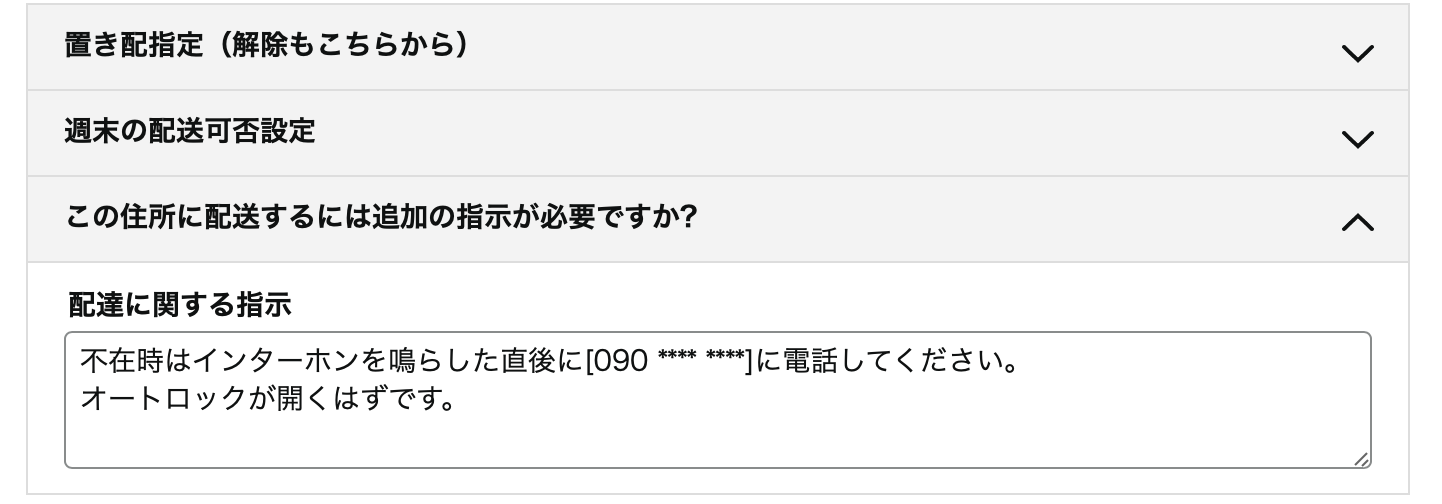 Amazonのこちらのページに記載があるように、置き配時に配達員さんに追加でメッセージを設定することが可能です。
