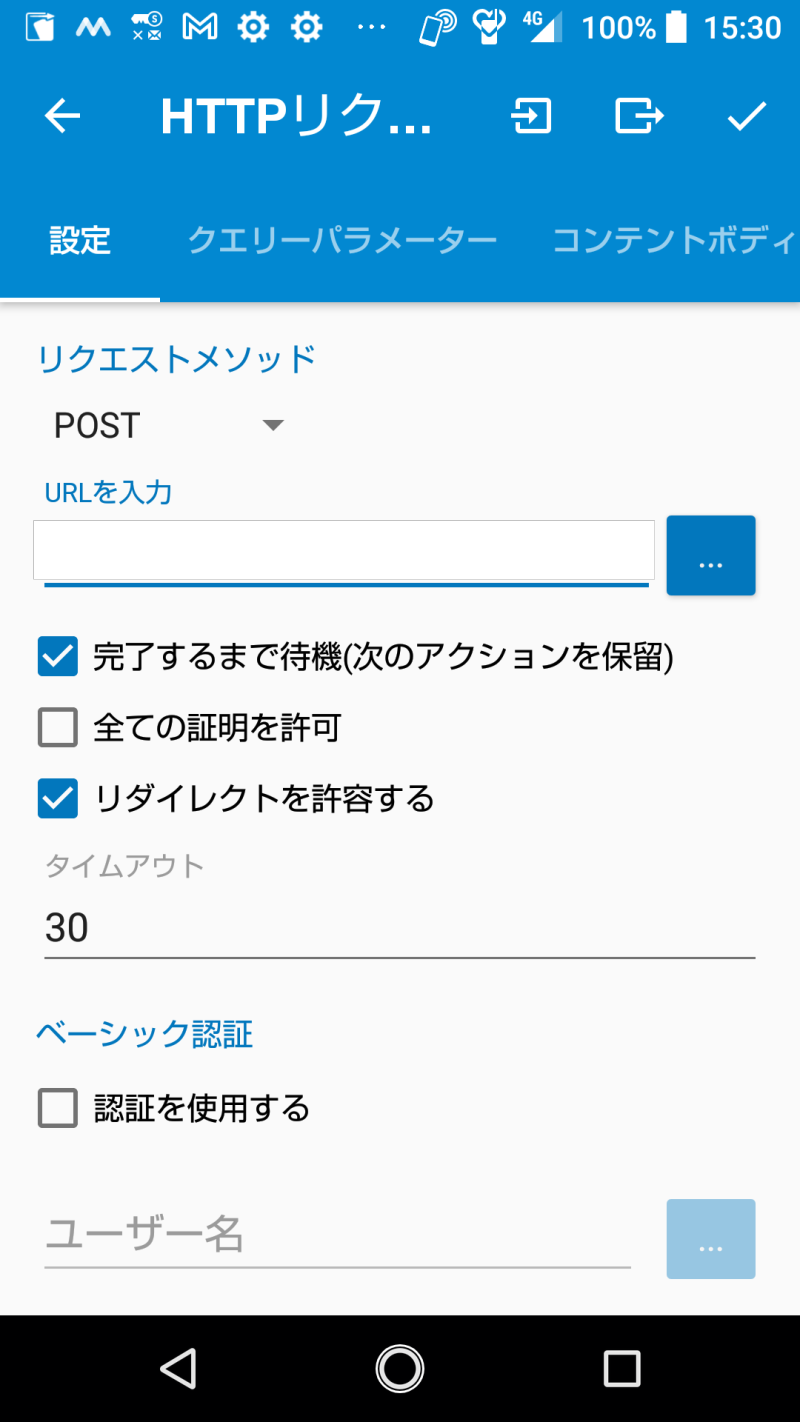 アクションの設定画面には、前の章の⑤で取得したURLを記載します。