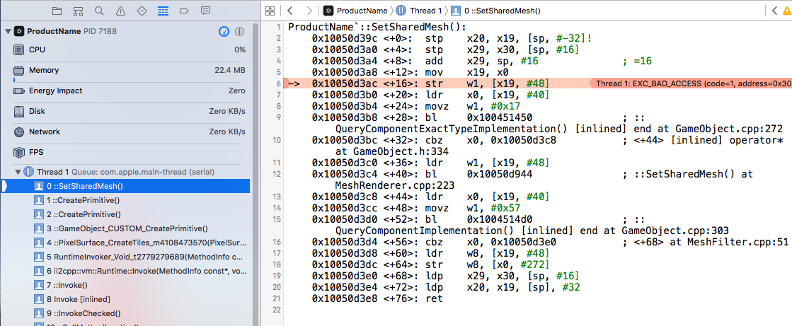 Unity for iOS で GameObject.CreatePrimitive() が原因の EXC_BAD_ACCESS が起きた時の対処法