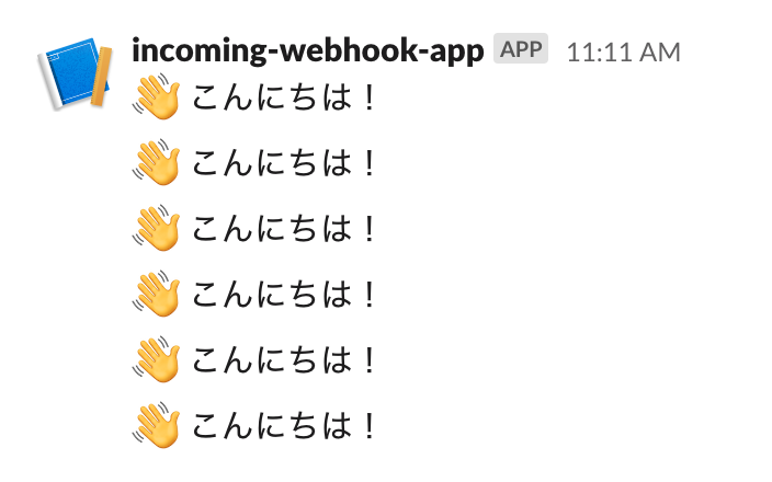 > response = webhook.send(text=":wave: こんにちは!")