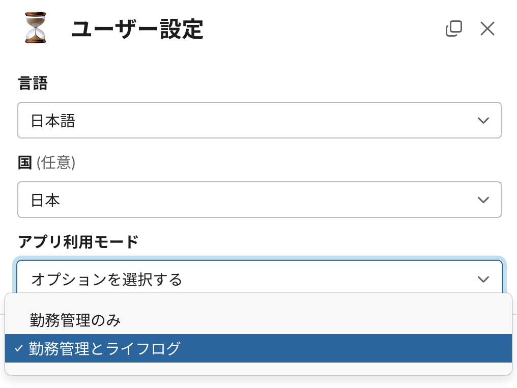 「勤務管理のみ」「勤務管理とライフログ」の二つから選ぶことができます。