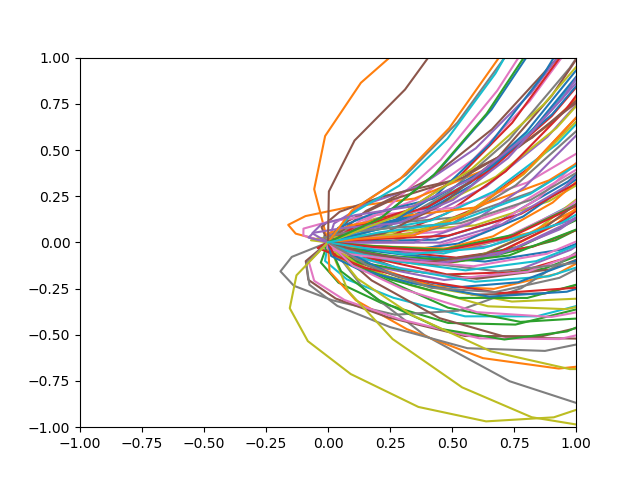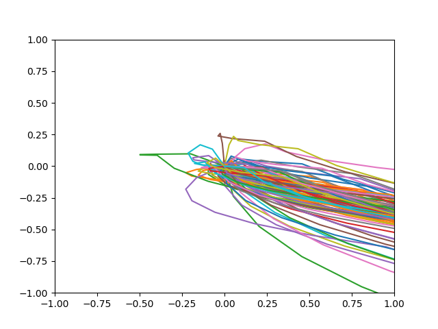 self.v = np.random.randn(2)*0.1 #初速度は正規分布