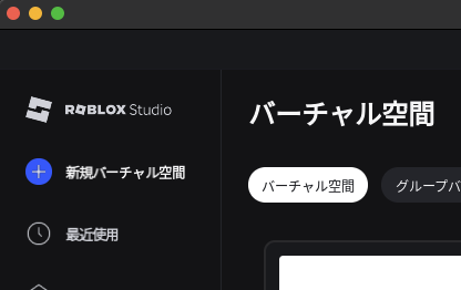 RobloxStudioを起動すると画面の左のメニューに「新規バーチャル空間」とあるのでそちらをクリックします。