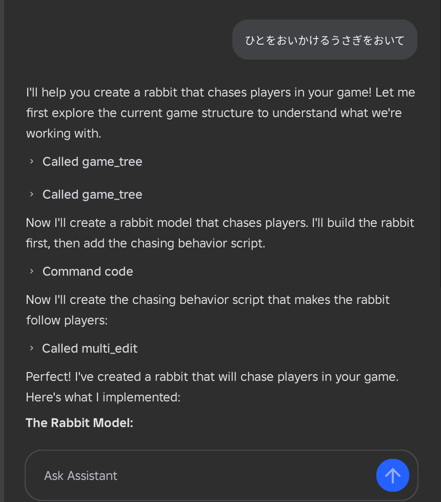 昨今、RobloxStudioにAIアシスタントが導入されたとのことで、これなら子供でも思い描いたゲームが実装できるのではと思い一緒に楽しみながらバイブコーディングを試してみました。