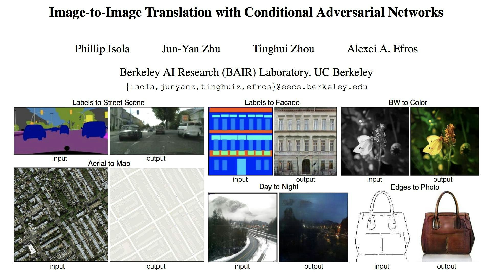 Phillip Isola, Jun-Yan Zhu et al., Image-to-Image Translation with Conditional Adversarial Networks.