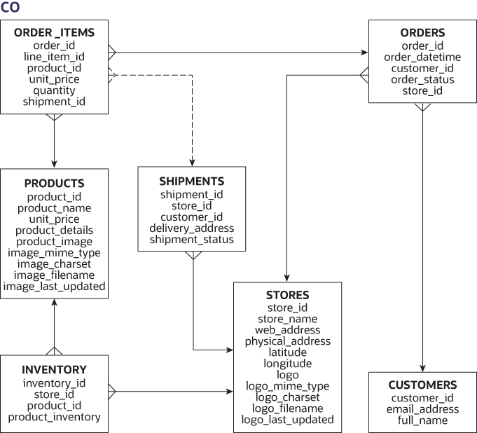 - Customer Orders (co)スキーマ は、E-Commerceのトランザクションのデモに役立つ最新のスキーマです。JSONを使用して半構造化データを保存できます。