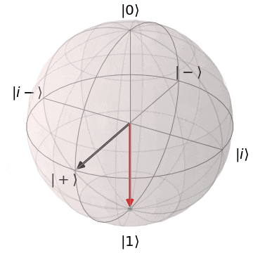 | $\ket{0}$から$\ket{+}$に | $\ket{1}$から$\ket{-}$に |
