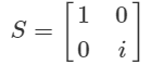 S\ket{+} = \mtrx{1}{0}{0}{i}\tate{\frac{1}{\sqrt{2}}}{\frac{1}{\sqrt{2}}} = \tate{\frac{1}{\sqrt{2}}}{\frac{1}{\sqrt{2}}i} \\