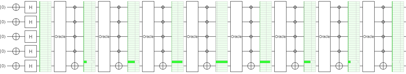 そこで、実験的に、適正回数以上に過剰にGrover Operatorを適用してみたいと思います。