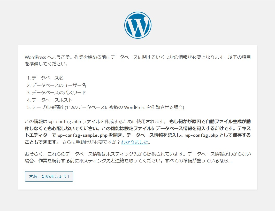 まずは、wp-config-sample.php をコピーして、wp-config.php を作成します。