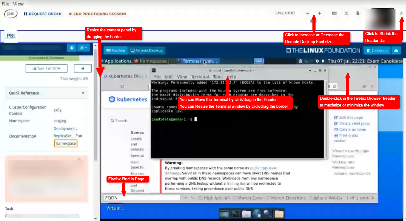The Linux Foundation recommends a screen size of 15” or higher to support the ExamUI.
