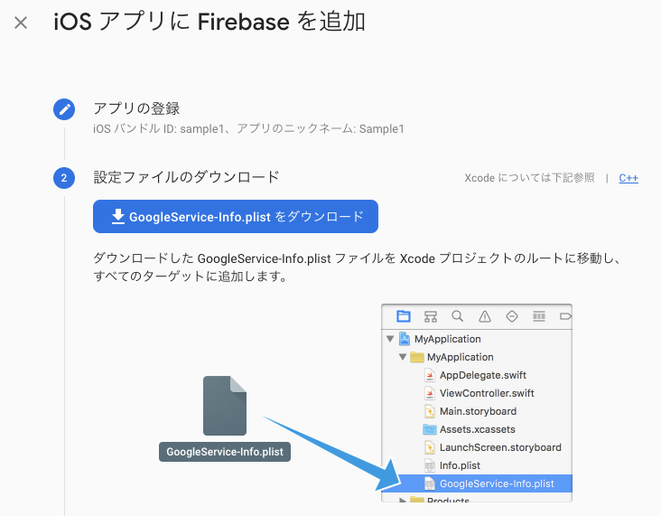 通常の設定ではセットアップ時にFirebase ConsoleからGoogleService-Info.plist