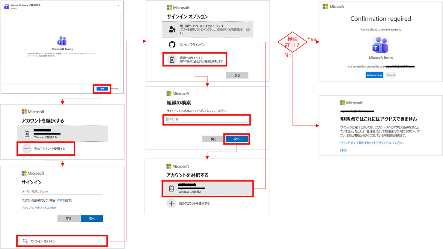 他社側でPowerAutomateからTeams接続OKなら確認画面が表示され、接続NGの場合は「これ以上アクセスできません」となります。