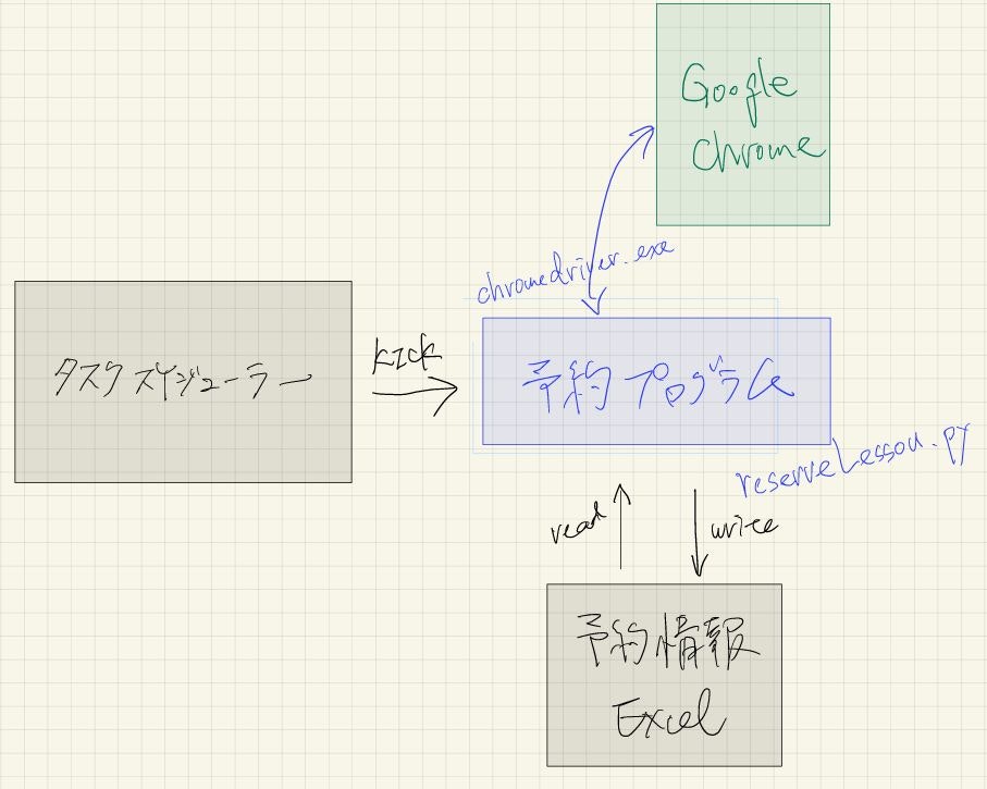 - 会員情報、予約情報(予約レッスン日時、予約場所など)は、Excelで管理