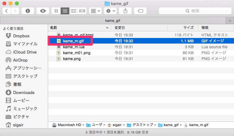 6.アニメーションGIFファイルが出力されました。