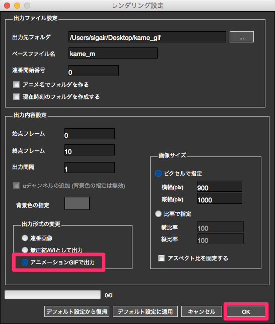 2.[アニメーション] > [レンダリング]