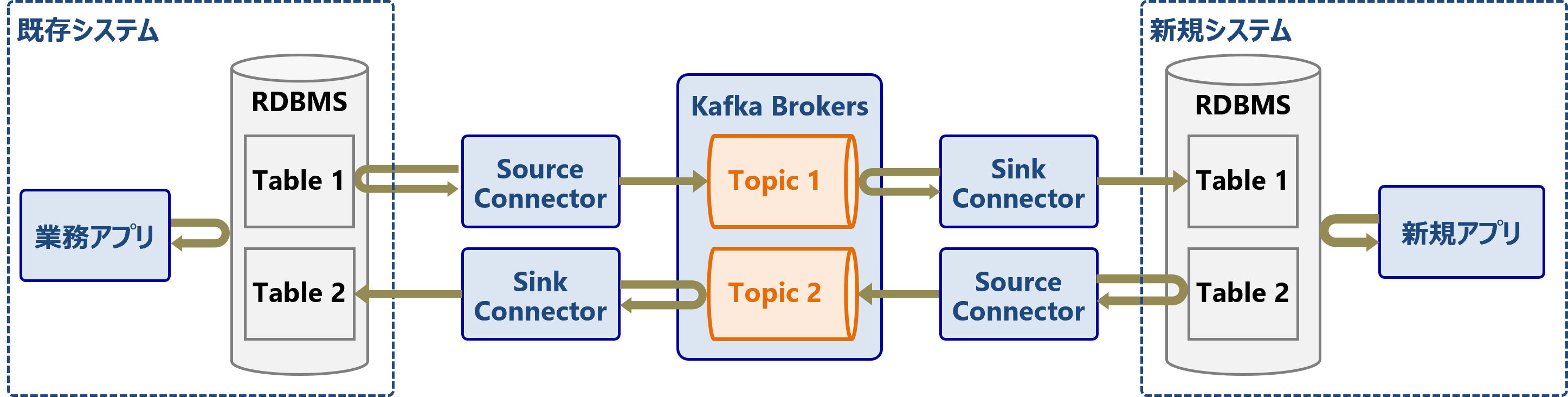 この既存システムと新規システムのDB間をCDCで同期することで、既存システムを残しながらシステムを拡張することができます。