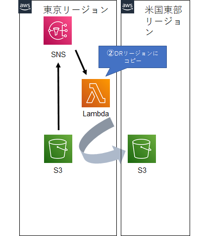 SNSでLambdaを起動してDRリージョンにスナップショットをコピーします。
