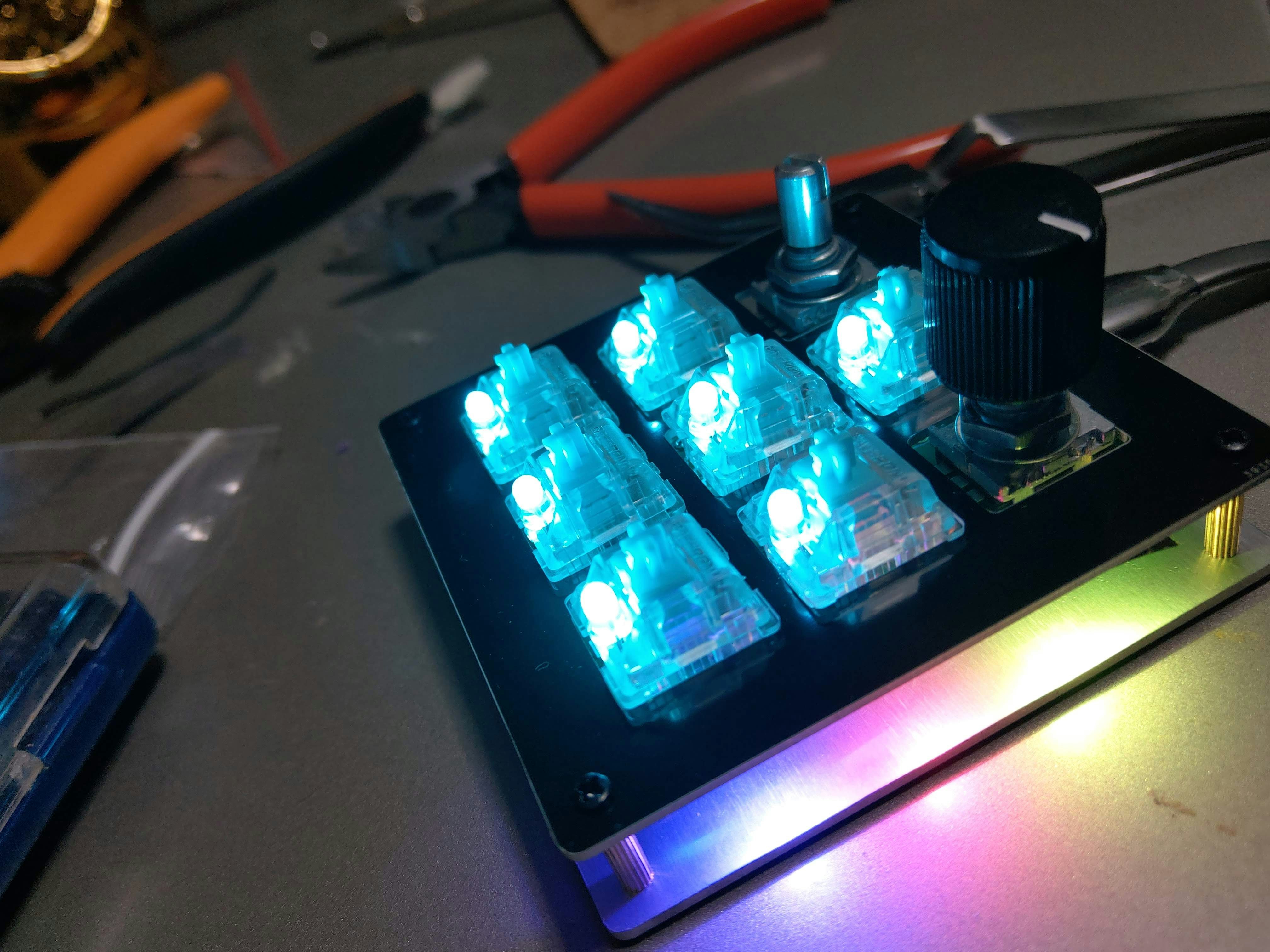 ロータリーエンコーダをつけずキースイッチをつけ、光らせる場合は9箇所全部必要です。