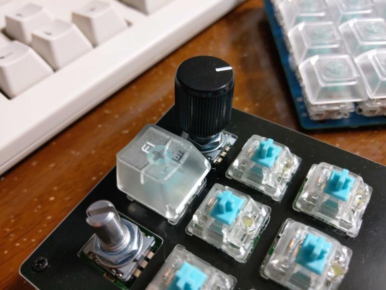 背の高いキーキャップだとツマミを回すときに指がぶつかりイマイチでした。