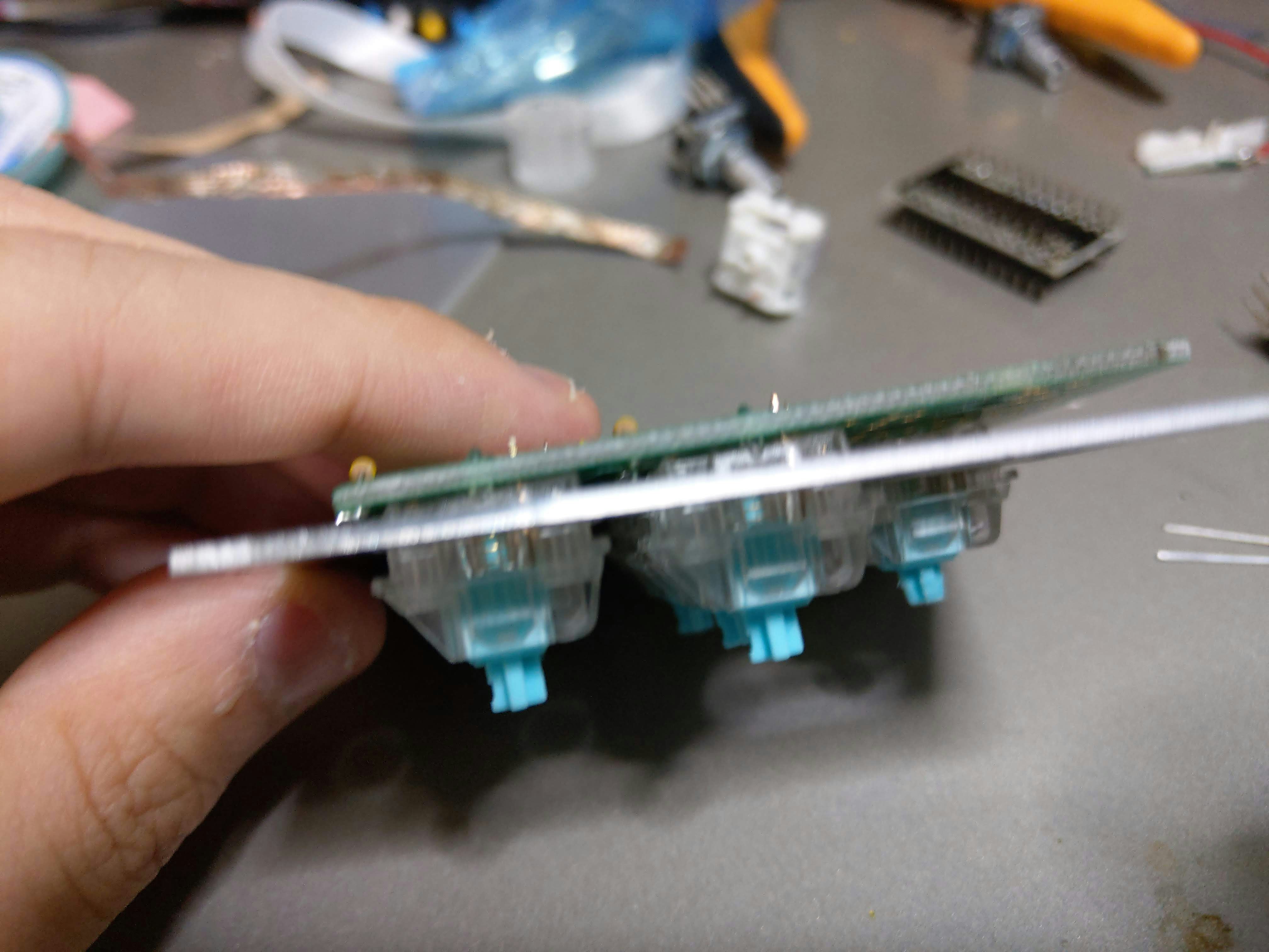 キースイッチをはんだづけしてからトッププレートを付けようとするとハマらないので気を付けてください。