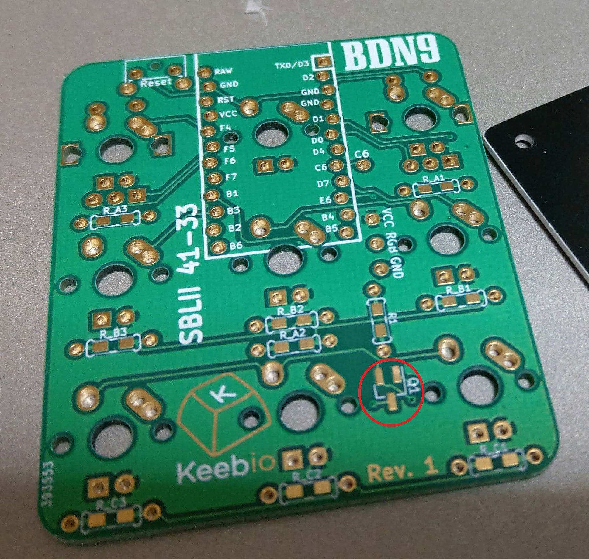 BDN9は基板のPro Micro用の穴がギザギザになっているため、