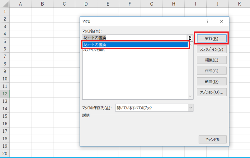 - エクセルブックに含まれる全シート名を一括で置換する。
