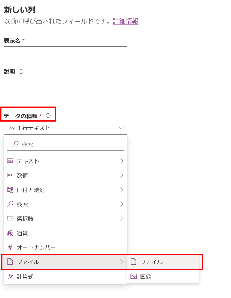 今回はDataverseにテストテーブルを用意し、ファイル列(「filetest」)を作成します。