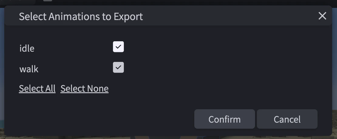 下図のダイアログが表示されるので、Confirmボタンを押して、アニメーションを保存します。注意:ただし、ファイル名はデフォルトの"Hedgehog.java"ではなく、"HedgehogAnimation.java"に変えて保存します。"Hedgehog.java"のままで保存してしまうと、3Dモデルのデザインとして保存した"Hedgehog.java"を上書きしてしまいます。