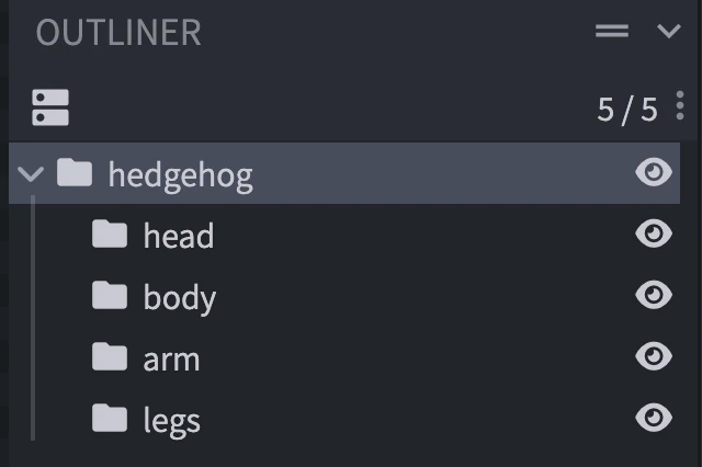 下図はデザイン結果の一例です。グループを用いるとその部分だけをアニメーションさせたりできますので、下図のように適宜頭や腕などのグループを作っておくのがおすすめです。