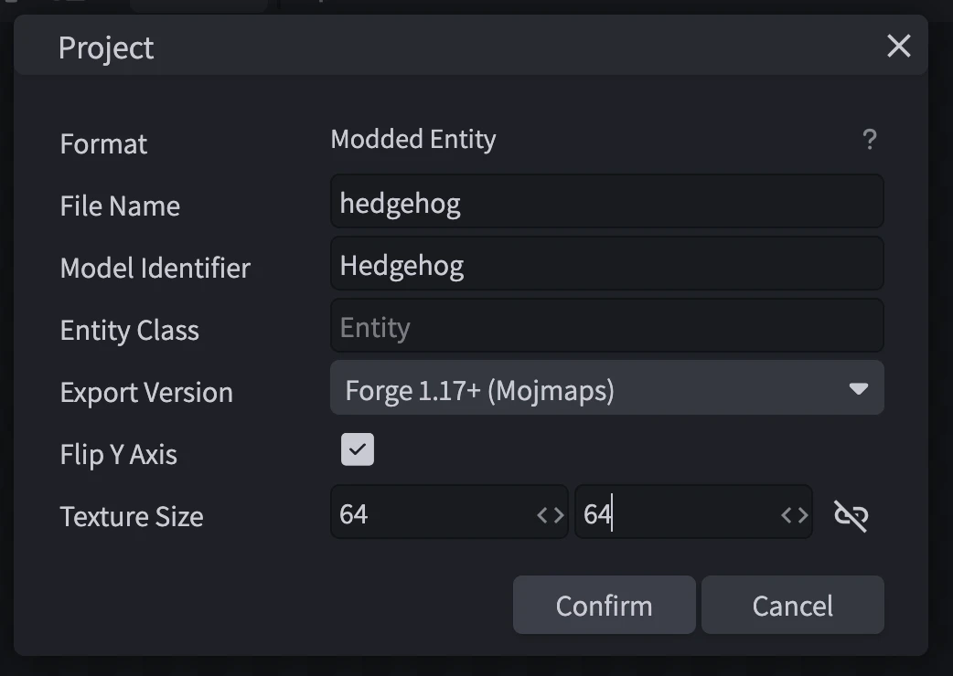 - Blockbenchを起動し、Fileメニュー → New → Modded Entityを選択します。
