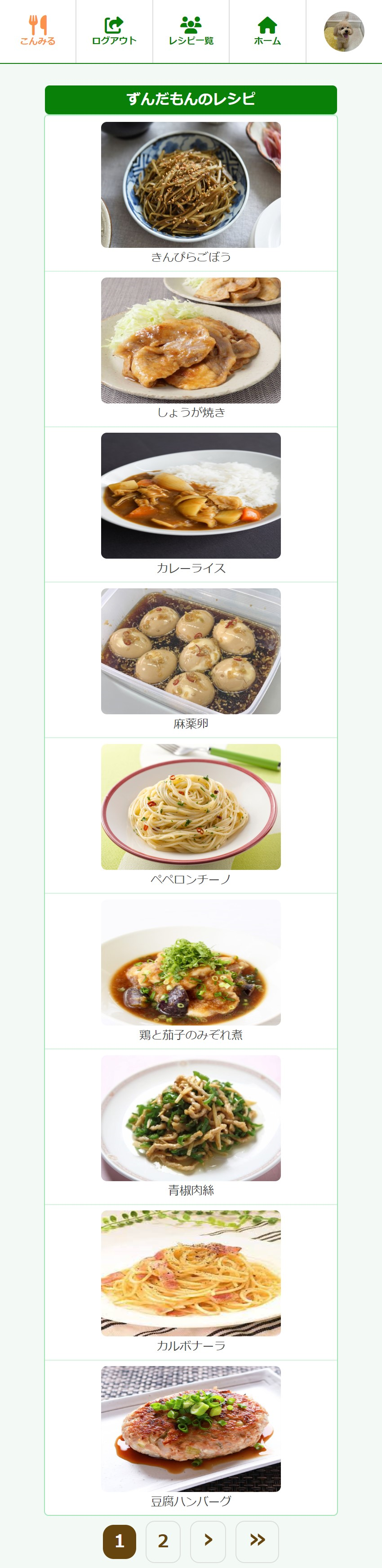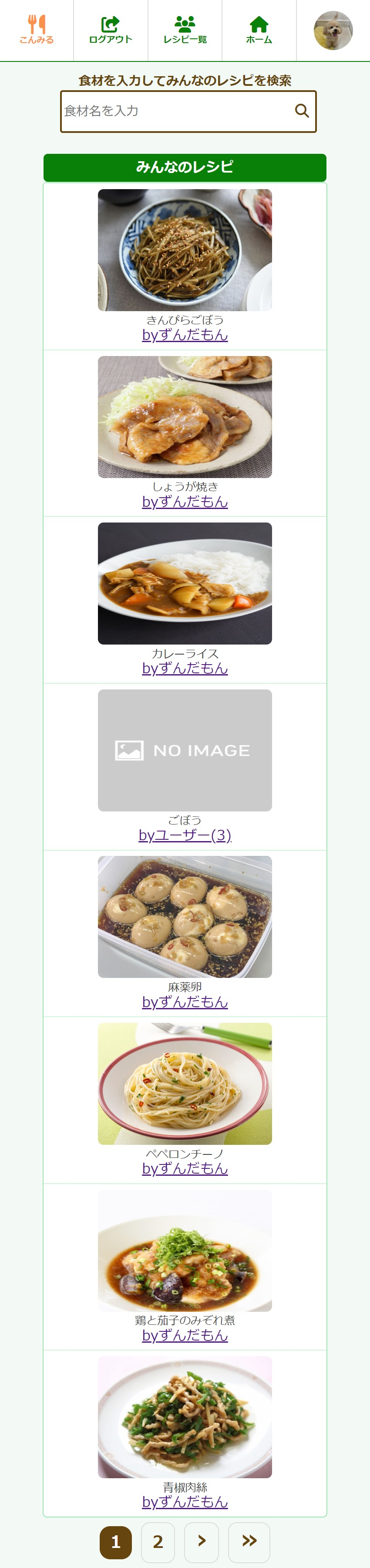 | 一覧ページからユーザーを クリックすると特定の ユーザーのレシピが見られます。 |