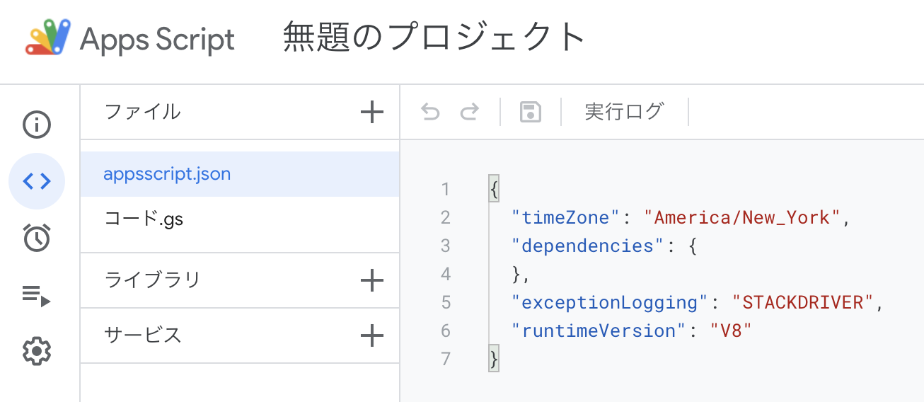 ということで、「appsscript.json」のタイムゾーンを修正します。