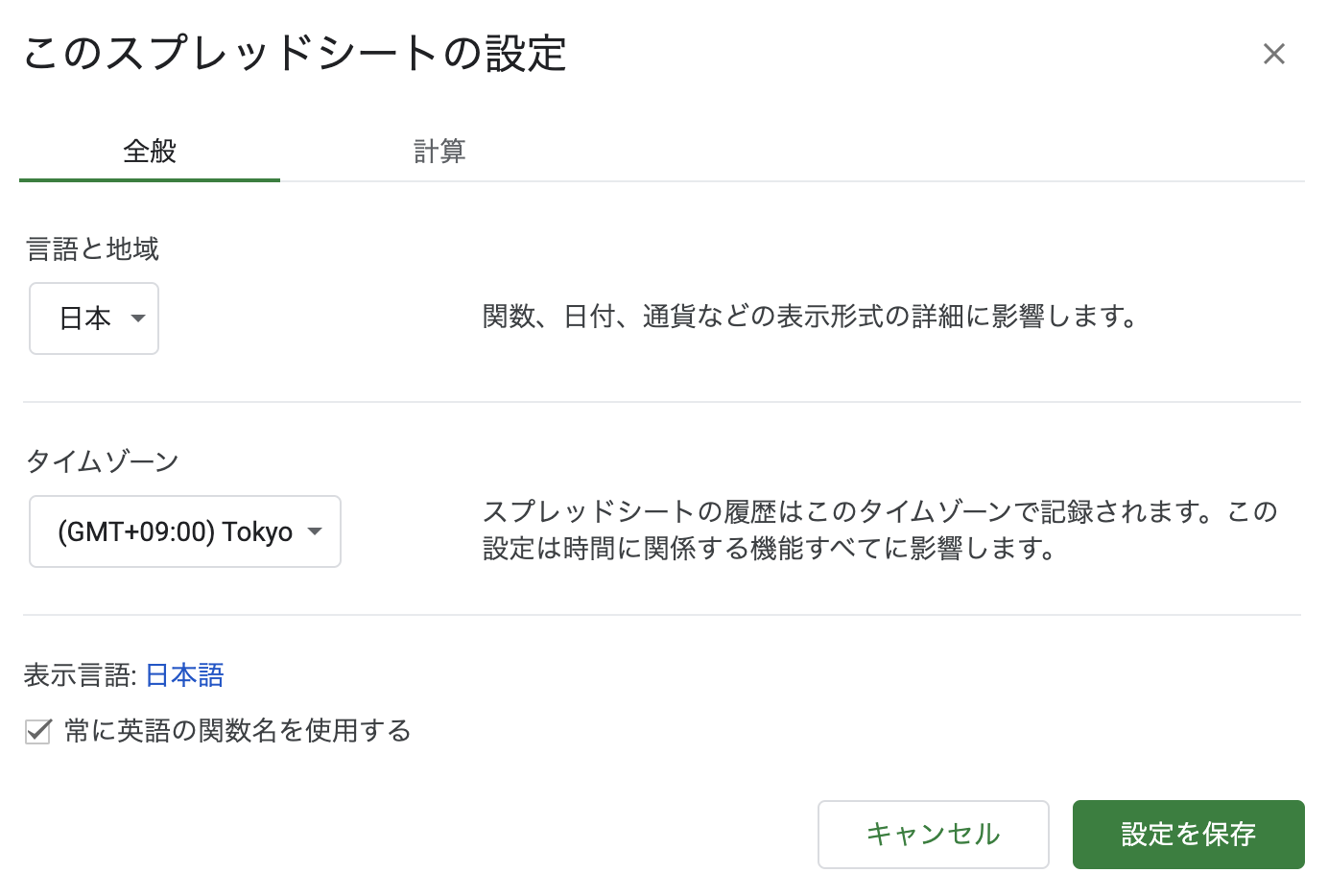 スプレッドシート自体のタイムゾーンは東京になっています。