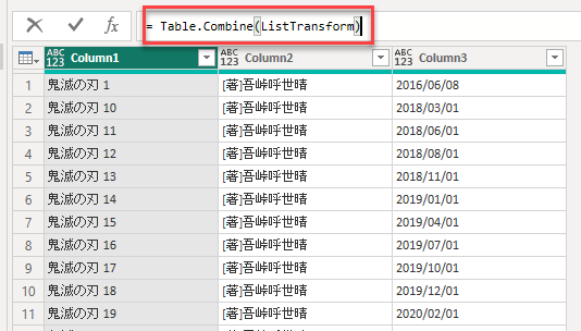 Table.TransformとTable.Combineは、以下のような処理イメージです。