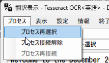 PCOTを起動して、翻訳対象のアプリを選択します。既に、翻訳表示になっている場合は「プロセス再選択」を選びます。