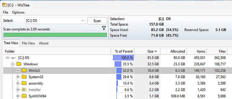 これはWizTreeのスキャン結果とほぼ一致しています。