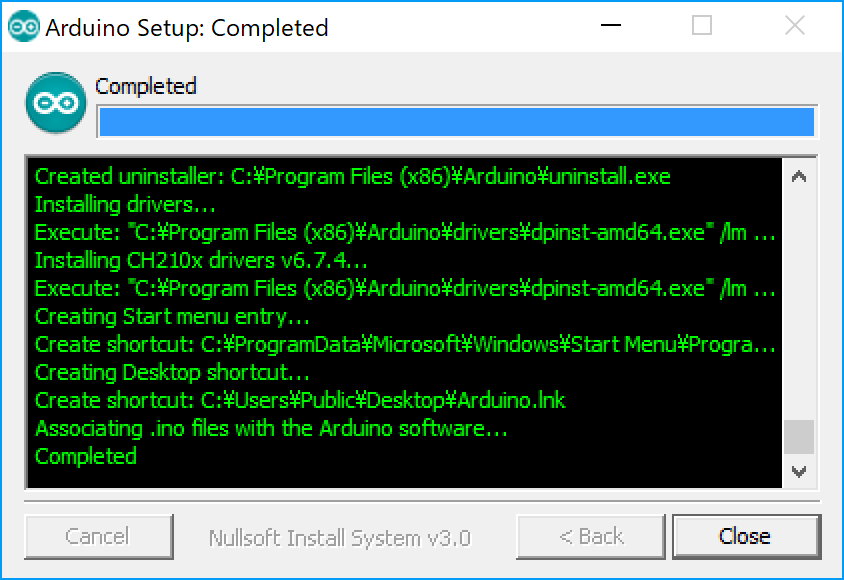 完了したのち、INSTALLEDが表示されている事を確認してボードマネージャーを閉じます。