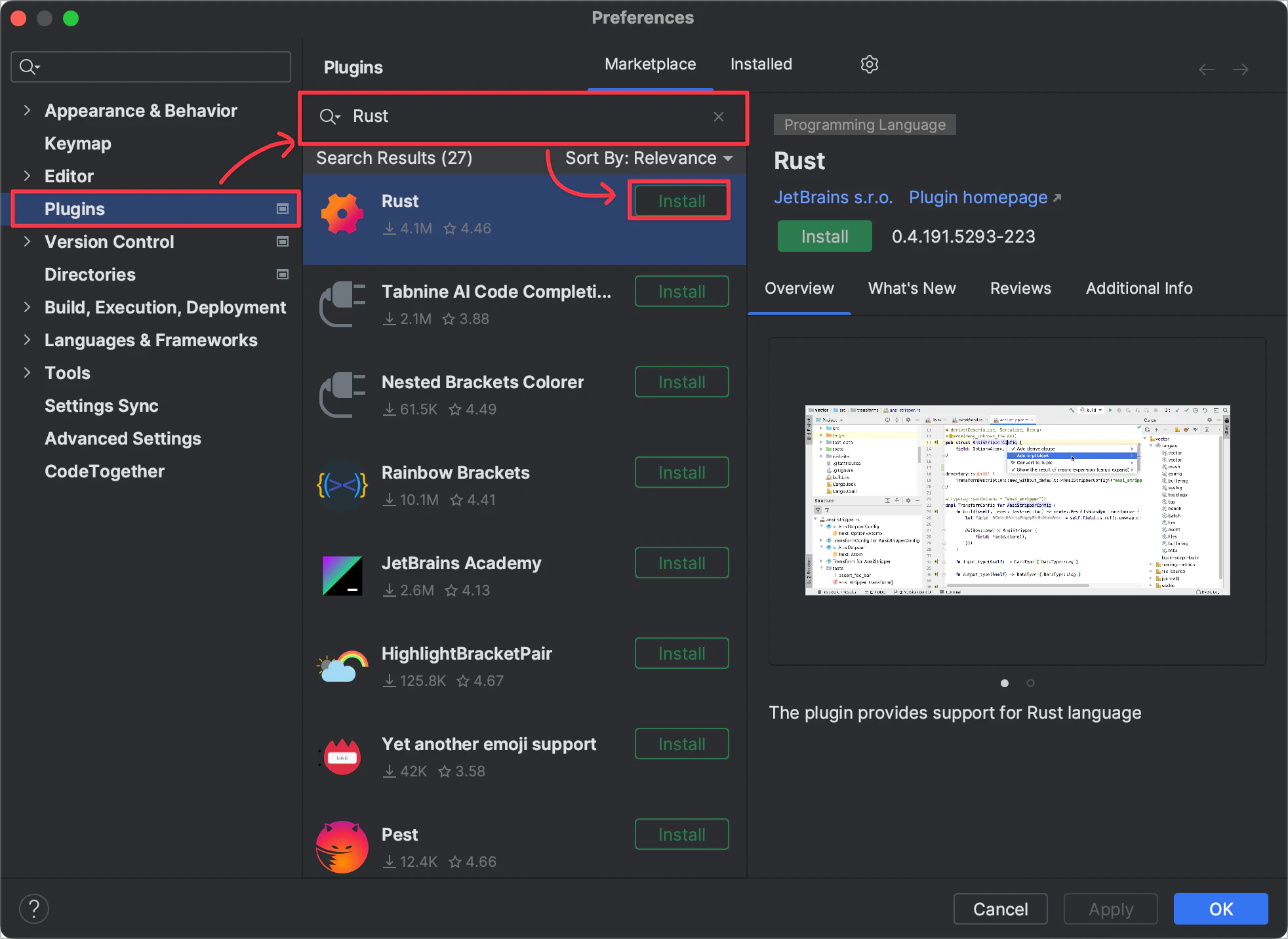 Rustプラグインをインストールする