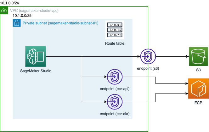 VPCエンドポイントsagemaker-studio-ecr-api sagemaker-studio-ecr-dkrを作成します。